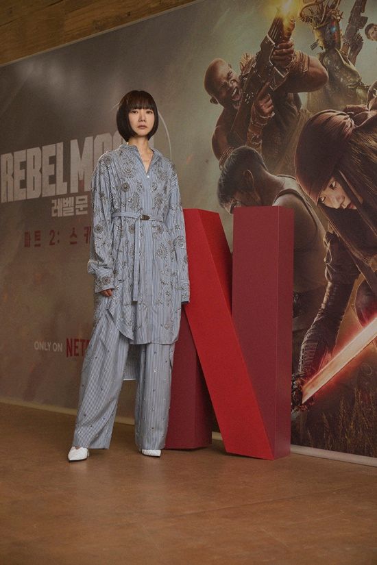 배두나는 19일 오전 서울시 중구 명동1가 커뮤니티하우스 마실에서 열린 넷플릭스 영화 '레벨 문(Rebel Moon): 파트 2 스카기버'(감독 잭 스나이더) 기자 간담회에 참석했다.