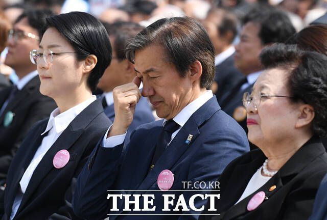 조국 조국혁신당 대표가 ‘제64주년 4.19혁명 기념식’에서 눈을 감은 채 생각에 잠겨있다.