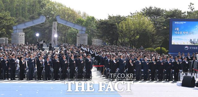 또 "우리는 자유민주주의를 지키고 발전시켜 미래세대에 전해줘야 할 역사적 의무가 있다"며 "정부는 4.19 혁명 유공자 한 분 한 분의 업적을 빠짐없이 기록하고 또 기억할 것이며, 이를 토대로 자유와 인권이 살아 숨 쉬고 평화와 번영이 넘치는 미래를 열어나가겠다"고 다짐했다.
