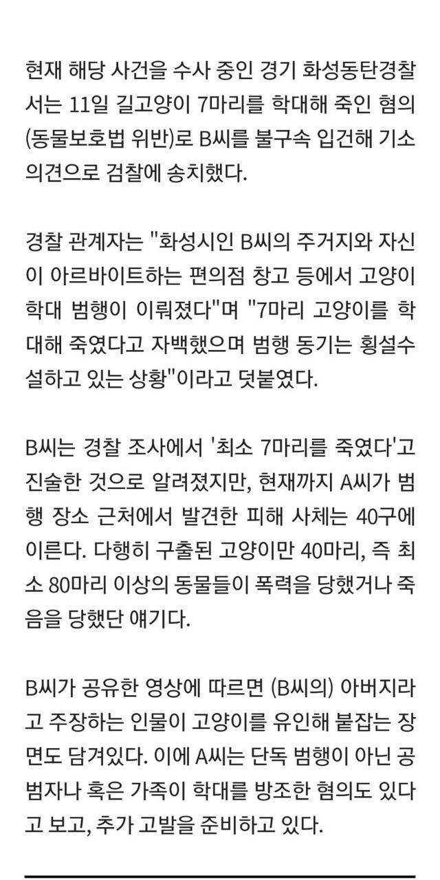 발견된 시체가 40마리 구조한 냥이가 40마리