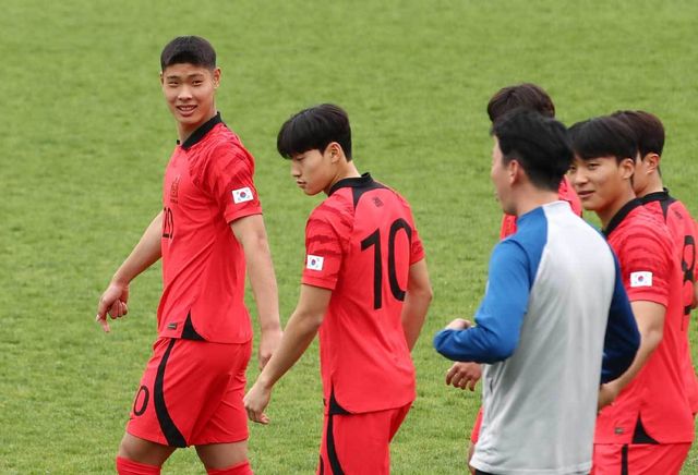 7일 오후 경기도 파주 축구국가대표트레이닝센터(NFC)에서 열린 20세 이하(U-20) 남자 축구대표팀 미디어데이에서 이영준을 비롯한 선수들이 단체촬영을 위해 이동하고 있다. 2023 국제축구연맹(FIFA) U-20 월드컵에 출전하는 대표팀은 오는 23일 프랑스전을 시작으로 26일 온두라스, 29일 감비아와 조별리그를 치른다. 2023.5.7 / 뉴스1