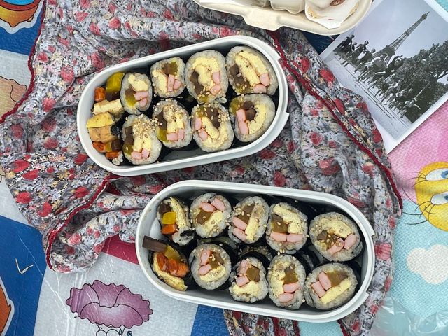 이런 이유로 에디터는 올봄 친환경 피크닉을 실천하기로 했다. 이는 탄소발자국을 줄이는 방법. 도시락 통에 김밥을 싸는 ‘피크닉의 정석’으로 이미 가득 찬 쓰레기통 앞에서 서성이며 죄책감을 느낄 필요가 없었다. 직접 만든 홈메이드 김밥만큼 맛있는 음식도 없단 걸 한국인이라면 알 듯. 또 먹을 만큼 만드니 남기지 않을 수 있다. 김밥을 다 먹은 후엔 여유롭게 자연을 즐기다 보니 진짜 소풍 같았다.
