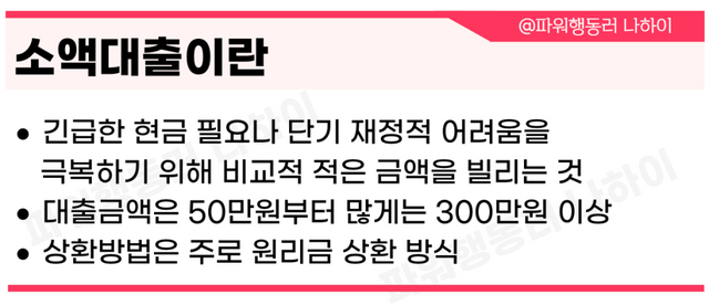 소액대출은 소비자가 긴급한 현금 필요나 단기 재정적 어려움을 극복하기 위해 비교적 적은 금액을 빌리는 것을 말합니다.