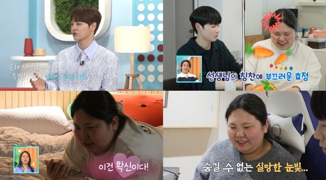 이 가운데 효정은 선생님의 끊임없는 칭찬과 훈훈한 외모에 반하며 관심을 보였다. 이에 영어 공부까지 열심히 하게 된 효정은 선생님에게 점점 빠져들었다. 효정은 친구에게 “영어 선생님 배우 정해인을 닮았다”며 관심을 표했고, 선생님과의 일을 털어놓게 된다. 이를 들은 친구는 선생님이 효정에게 “관심있는 것 같다”며 부추기면서 MC와 박서진을 당황케 했다.