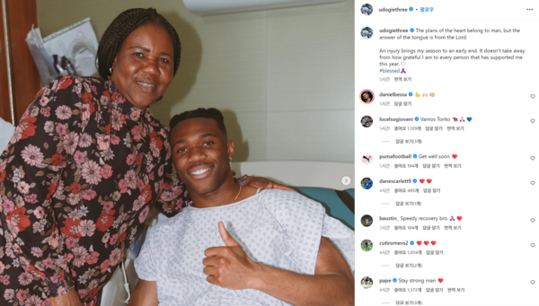 우도기의 발표 이후 ‘디애슬레틱’, ‘BBC’ 등 현지 매체들도 관련 소식을 보도했다. 아직 구단 공식 발표는 나오지 않아 자세한 부상 상태는 알려지지 않았는데, 회복기간이 3개월에 이를 거란 관측이 나온다.