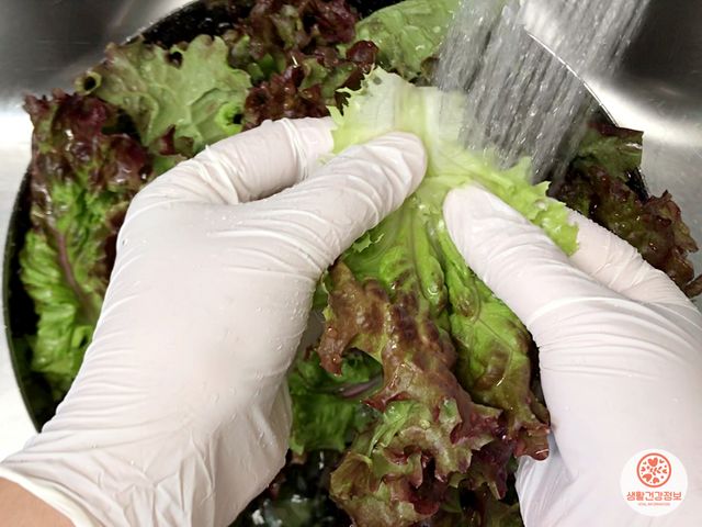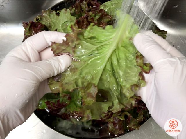 상추를 흐르는 물로 씻어주세요.