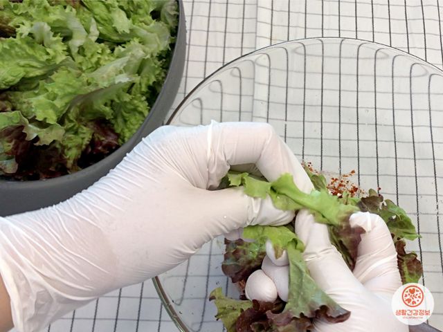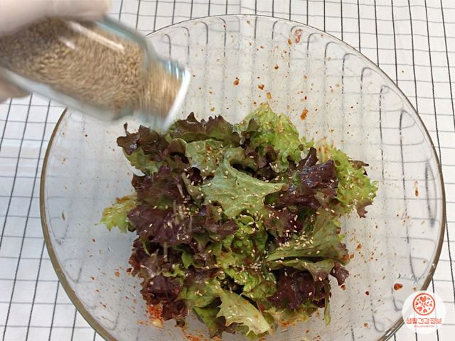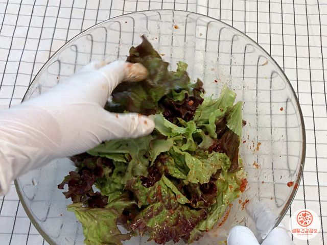 상추에 양념이 골고루 묻게