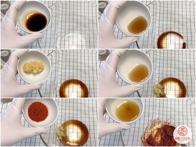 양념은 간장, 멸치액젓, 고춧가루, 매실액기스,