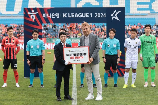 ‘이달의 공헌상’은 선수뿐만 아니라 프런트 부문도 선정해 의미를 더했다. 보이지 않는 곳에서 팬들과 선수단을 위해 노력하는 프런트를 조명한다. 홈경기운영팀의 정호용 대리가 첫 수상의 영예를 안았다. 구단 티켓 정책, 홈경기 운영 등을 담당하는 정 대리는 지난달 31일 FC서울전에서 유료 관중 집계 이후 첫 매진 사례를 내거는 데 크게 이바지했다.