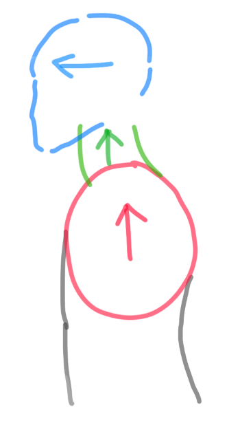 그렇기 때문에 목도 앞으로 기울고 + 머리역시 앞으로 쭉 뻗어 나오는 형태가 되는거임