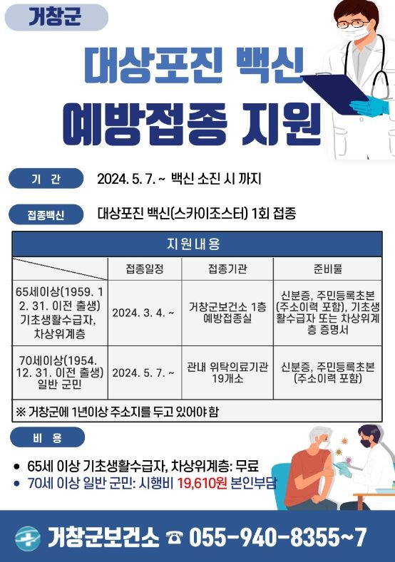 | ▲ 거창군, 대상포진 예방접종 70세 이상 일반 어르신으로 확대 |