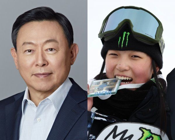 신동빈 회장(왼쪽), 최가온. 사진제공|롯데지주, X게임 조직위원회