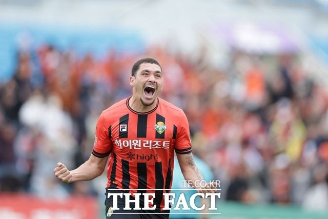 [더팩트 | 박순규 기자] 브라질 출신의 강원 FC 포워드 야고 카리엘로(24)가 ‘하나은행 K리그1 2024’ 8라운드 MVP 영예를 차지했다.