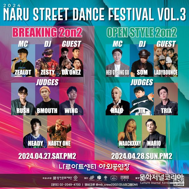 문화저널코리아 김영일 기자 | (재)광진문화재단(이사장 김경호)는 오는 4월 27일(토)부터 28일(일)까지 나루아트센터 야외공연장에서 <2024 나루 스트릿 댄스 페스티벌>을 개최한다.