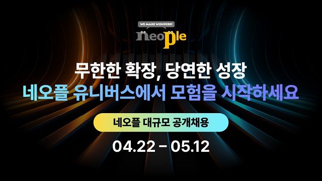 원이본 네오플 인재채용팀장은 "네오플은 새로운 재미를 만들어 나가고자 하는 비전 아래 우수한 역량의 인재들과 교류하며 성장할 수 있는 곳"이라며 "커리어라는 모험에서 새로운 도전을 꿈꾸는 열정적인 분들의 많은 관심과 지원을 부탁한다"고 전했다.