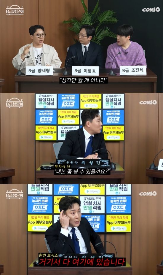지난 19일 콘텐츠제작소 유튜브 채널에는 '하는 짓과 반대로 은근 소심한 그 녀석들 모셔봤습니다!'라는 제목의 'B급청문회' 시즌2 45회 영상이 게재됐다. 이날 게스트로는 양세형, 이창호, 조진세가 출연했다.