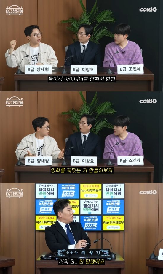 MC 최성민은 "예전에 양세형 씨 기억나지 않나. 저희가 영화를 한 번 만드려고 극을 한 번 썼다가 개망신을 당했다"고 고백했다.