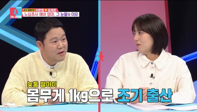 이에 김구라는 "너무 그렇게 자책하지 말고, 우리 딸이 29주 만에 나왔다. 딸아이 몸무게 1kg으로 조기 출산했다. 의사 선생님의 '잘 클거다. 걱정하지 말아라'는 말만 믿었더니 걱정을 덜었다. 지금 너무 잘 크고 있으니까 너무 걱정할 필요 없다"라며 걱정하는 이은형을 위로했다.