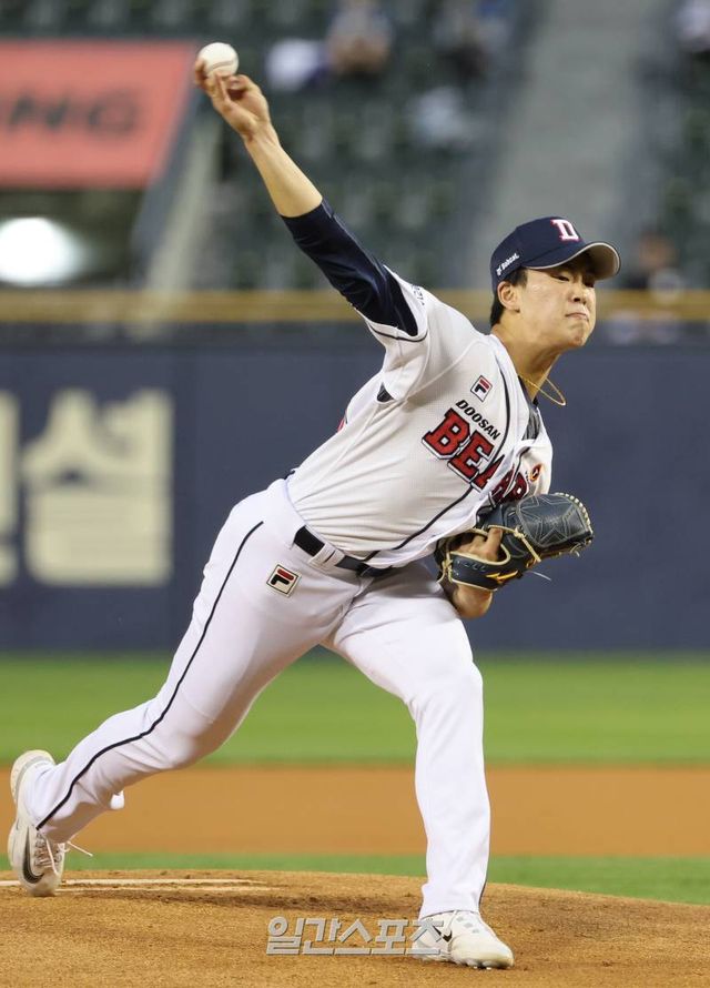 하지만 최준호는 이들을 상대로 단 한 번도 도망가지 않았다. 5이닝 동안 던진 공은 총 67구. 스트라이크는 47구였다. 2스트라이크를 잡았다고 도망가지도 않았고, 변화구도 곧잘 스트라이크존 안에 넣었다. 몸쪽과 높은쪽 스트라이크존에 꽂는 강속구도 인상 깊었다. 국가대표로 성장한 강속구 선발 선배 곽빈(25)의 소위 '긁히는 날'을 연상하게 하는 수준 높은 투구였다.