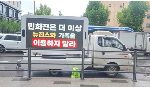 "더 이상 뉴진스 이용말라"⋯ 민희진에 뿔난 뉴진스 팬덤 '트럭 시위' 강공
