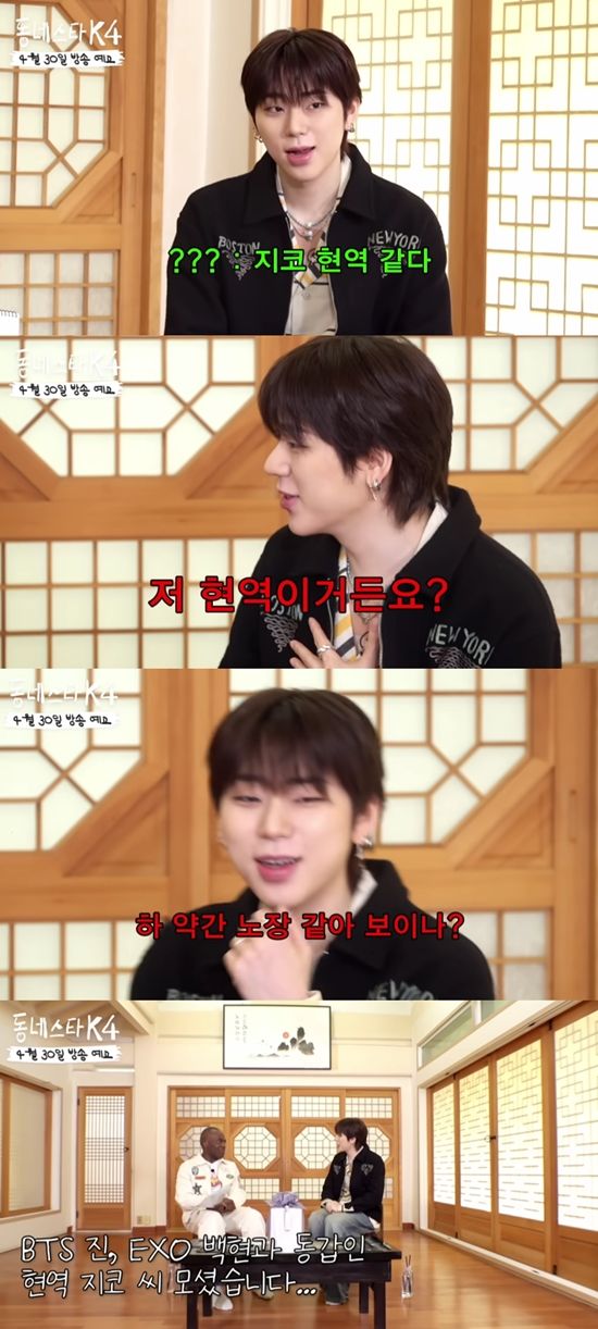 쉽게 풀리지 않은 의혹(?)에 지코는 "저 BTS 진, 엑소 백현이랑 동갑이다"라고 해명에 나서 웃음을 안겼다.