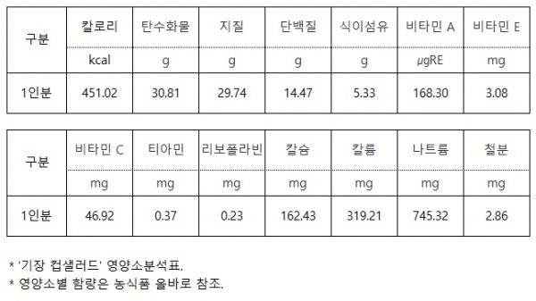 기장은 오곡밥에서 빠질 수 없는 귀한 잡곡으로 단백질, 미네랄 등 각종 영양성분이 풍부하다. 또 식이섬유는 백미보다 3배, 비타민B군은 약 2배 정도 많다. 식이섬유는 원활한 배변활동을 돕고 비타민B군은 몸에 활력을 불어넣는다.