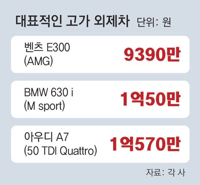 벤츠 딜러 박모 씨는 “E300 AMG라인(9390만 원)까지는 렌트로 구매하면 7% 할인 프로모션이 적용된다”고 설명했다. 할인 후 가격은 8733만 원이다. 또 다른 벤츠 딜러 정모 씨는 “많은 법인 고객들이 E클래스 등 1억 원 전후 차량들에 대해 일반 번호판으로 출고할 수 있냐고 문의한다”고 전했다.
