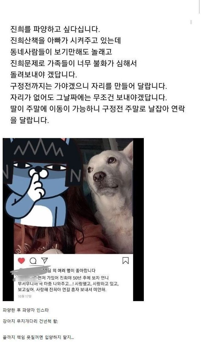 파양되어 돌아온 강아지