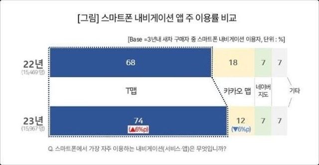 티맵이 1등이라고 당연히 생각은 했는데 사람들이 생각보다 카카오 네이버 더 안 쓰네요