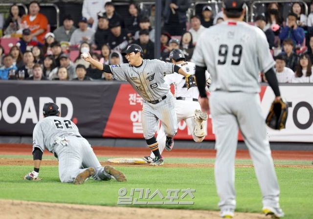최원호 감독은 빈 2루 자리에 공격력을 갖춘 김태연을 선택했다. 대신 수비가 필요할 땐 이도윤을 기용할 것이라 예고했다. 최 감독은 24일 경기 전 "수비 쪽에서는 내야수 통틀어 이도윤이 풋워크나 포구 능력이 가장 좋은 선수다. 송구 강도가 황영묵보다는 조금 떨어지는 정도다. 수비를 강화해야 할 때는 이도윤이 출전하는 게 최선"이라고 설명했다.