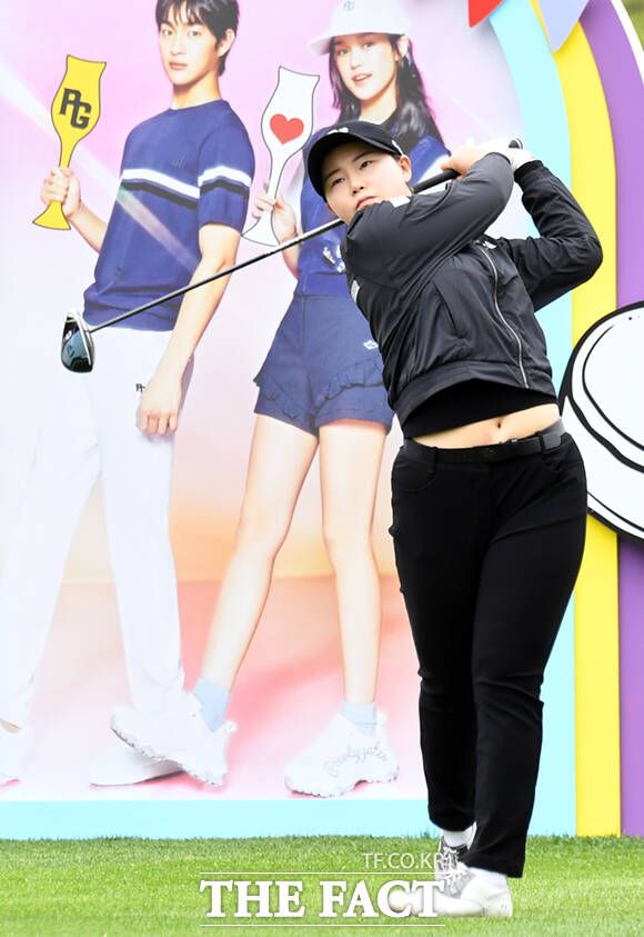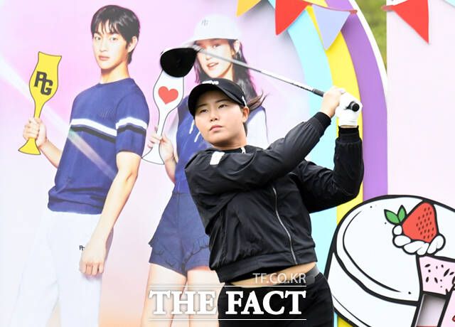 임희정이 25일 경기 양주 레이크우드CC에서 열린 '크리스에프앤씨 제46회 KLPGA 챔피언십' 1라운드 경기에 참가해 10번홀 티샷을 치고 있다.