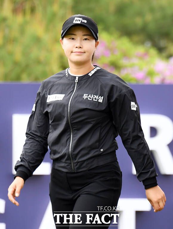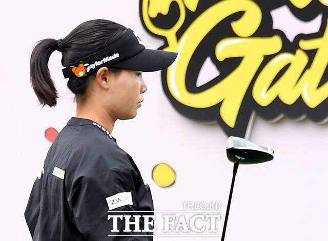 [더팩트ㅣ양주=이새롬 기자] 임희정이 25일 경기 양주 레이크우드CC에서 열린 '크리스에프앤씨 제46회 KLPGA 챔피언십' 1라운드 경기에 참가해 10번홀 티샷을 마친 뒤 이동하는 가운데, 그녀의 트레이드 마크인 사막여우 볼 마커가 보이고 있다.