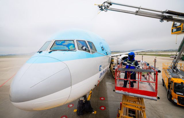 항공기 세척에는 특수 장비 6대와 인력 17명이 동원됐다. 물을 공급하고 분사하는 트럭 2대, 항공기 동체 접근에 사용되는 리프트카 2대, 항공기 주 날개와 꼬리 날개 접근에 사용되는 바스켓 고소 장비 2대다. 항공기 동체와 주 날개, 꼬리 날개, 조종석 앞유리 등을 꼼꼼하게 닦는 데 총 3시간 가량이 소요됐다.