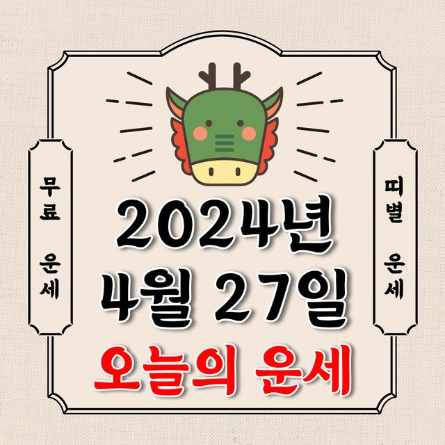 오늘의 운세 2024년 4월 27일 토요일 (음력 3월 19일 / 띠별 운세 / 생년월일 운세)에 대해 알아 보겠습니다.