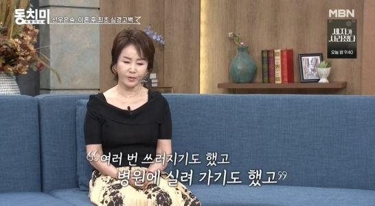 선우은숙은 MBN '속풀이쇼 동치미' 방송 말미에 홀로 등장해 "저 역시 어렵고 힘든 시간을 보내고 있다. 요즘에 사실 여러 가지 충격적인 일들을 통해서 여러 번 쓰러지기도 했고 실려가기도 했고 회복이 아직 안 된 상태"라고 고백했다.
