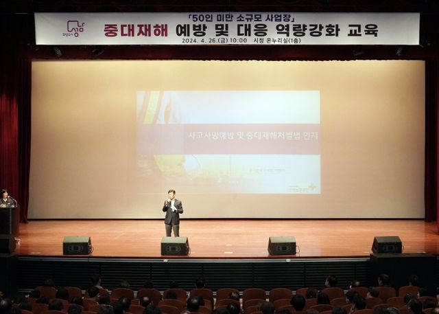 [파이낸셜경제=김예빈 기자] 성남시는 26일 오전 10시부터 11시30분까지 시청 온누리실에서 소규모 사업장 사업주 등 약 500명을 대상으로 중대재해 예방 및 대응 역량강화 교육을 실시했다.
