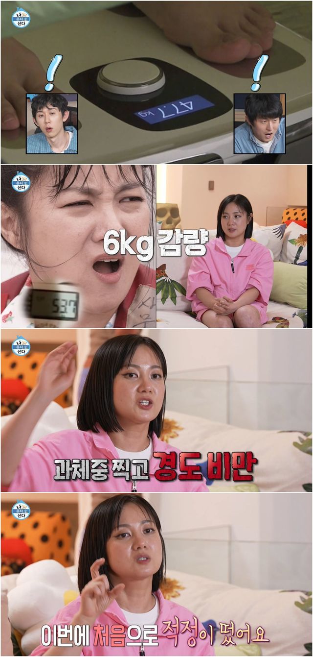 이후 박나래는 몸무게를 측정했다. 53.7kg에서 6kg 빠진 47.7kg를 기록했다.