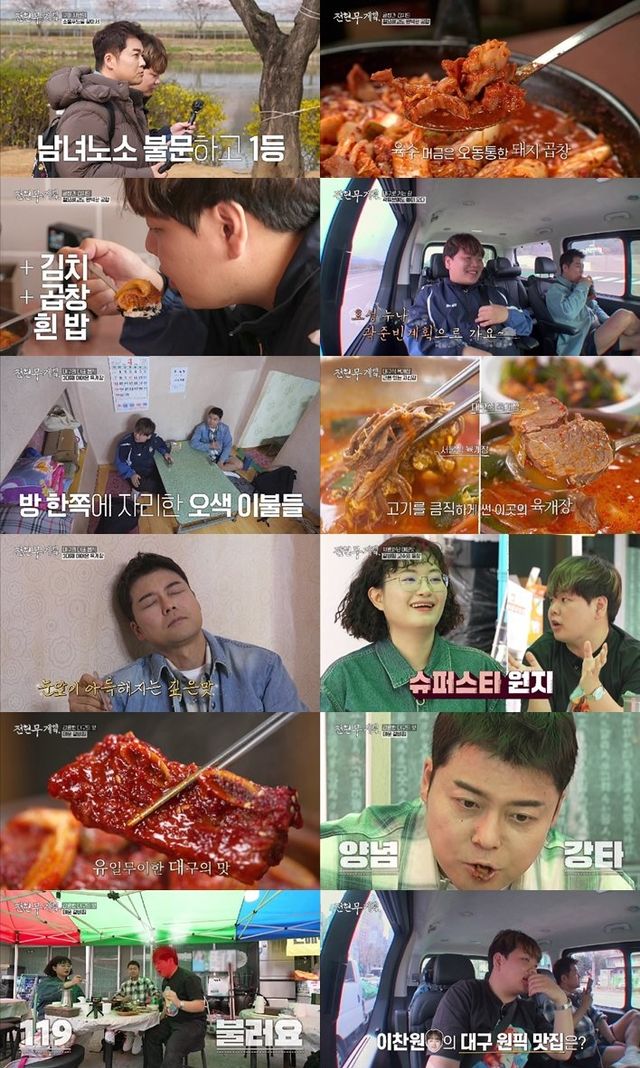 26일 방송된 MBN ‘전현무계획’ 11회에서는 ‘여섯 번째 길바닥’으로 대구를 택한 전현무-곽튜브가 잠시 들른 구미 시민들의 ‘최애’ 곱창전골은 물론, 대구의 대구탕, 찜갈비 등을 뽀갠 현장이 펼쳐졌다. 히 ‘전현무계획’ 최초로 곽튜브의 ‘찐친’인 ‘대한민국 여행 크리에이터 3대장’ 원지가 게스트로 합류해, ‘먹트립’의 묘미를 끌어 올렸다.