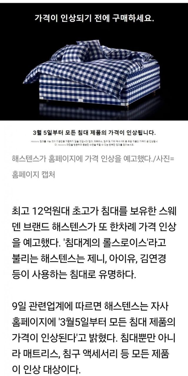 해스탠스는 올해 최상위 침구모델을 10% 상향조정했다.