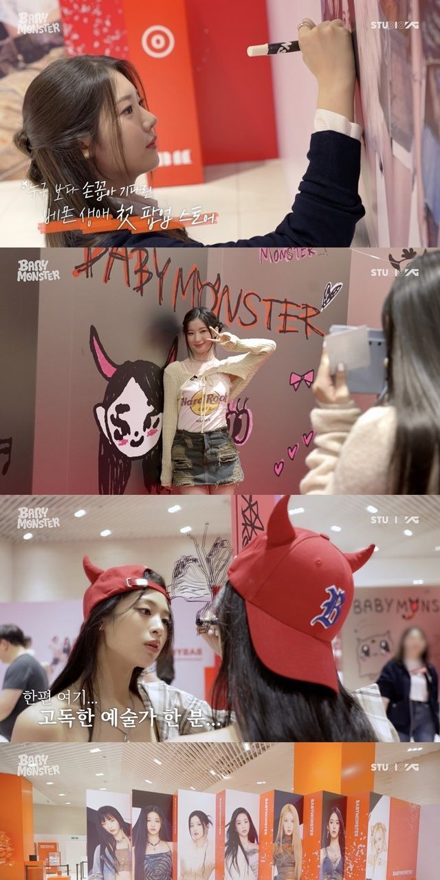 베이비몬스터의 정체성을 오롯이 녹여낸 공간인 만큼 멤버들은 설렘을 감추지 못하며 환호를 쏟아냈다. 자신들을 반기는 초대형 몬스터 풍선을 보자마자 달려가 와락 안기는가 하면, 귀여운 상황극도 펼쳐 웃음을 자아냈다.
