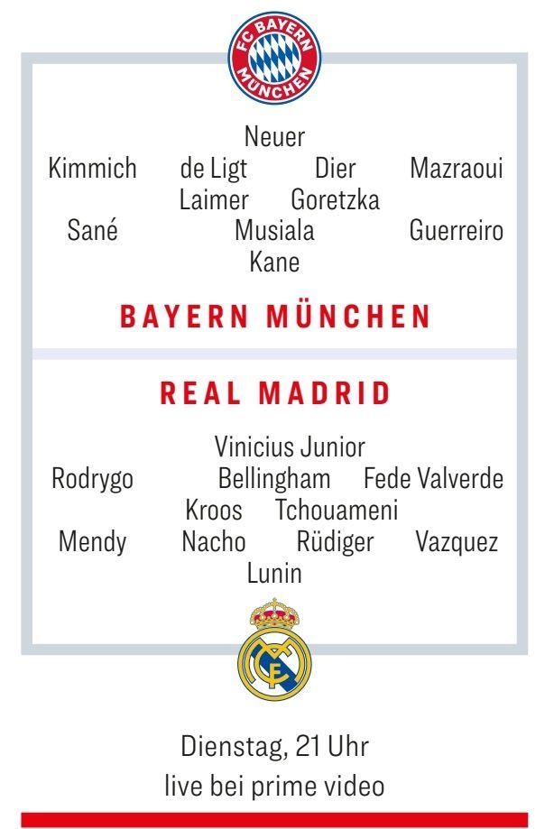 독일 '키커'는 29일(한국시간) "더 리흐트와 콘라드 라이머가 레알 마드리드와의 경기에 나설 수 있다"며 "아스널을 상대로 한 라인업과 변화가 없을 것"이라고 전했다.