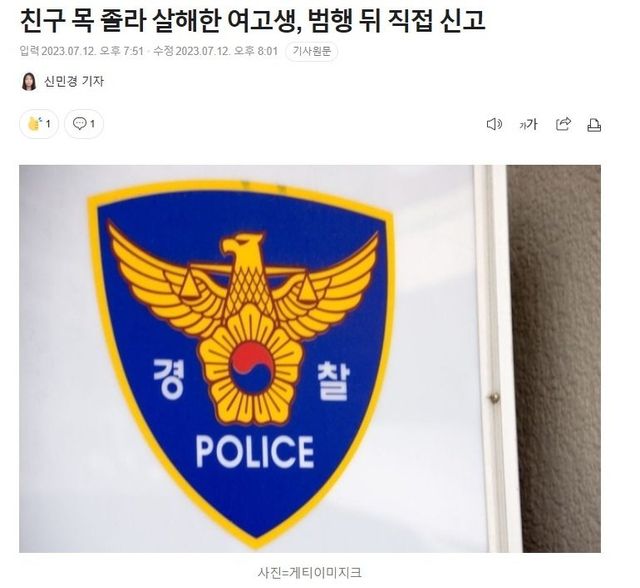 경찰 관계자는 “A양이 범행을 한 뒤 직접 112에 신고했다”며 “자세한 범행 경위 등을 조사한 뒤 구속영장을 신청할 예정”이라고 밝혔다.