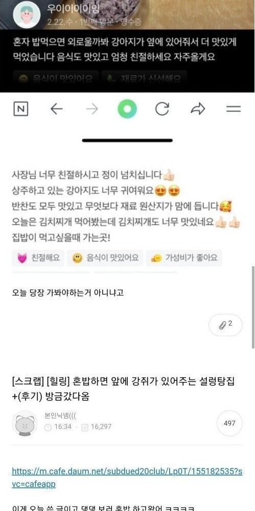 혼밥하면 앞에 강아지가 있어주는 설렁탕집