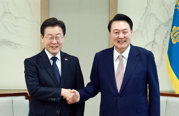 [아이뉴스24 김보선,유범열 기자] 현 정부 집권 720일 만에 이뤄진 영수회담을 두고 평가가 극과 극으로 갈리고 있다. 대통령실은 여야의 첨예한 대치 국면을 해소하고 실종된 협치와 대화의 정치를 복원하기 위한 출발점에 섰다고 한 반면, 더불어민주당은 윤 대통령의 국정기조 전환 의지를 확인할 수 없었다며 싸늘한 반응이다. 윤석열 대통령과 이재명 민주당 대표가 여당 대표와의 3자 회동 등의 형식으로 조만간 다시 만나자는 데 긍정적 입장을 보였지만 기약이 없는 상태다. 향후 정국에 언제 걷힐지 모르는 먹구름이 끼었다는 평가가 나온다.