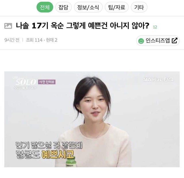 나솔 17기 옥순 예쁜거 맞냐는 여자
