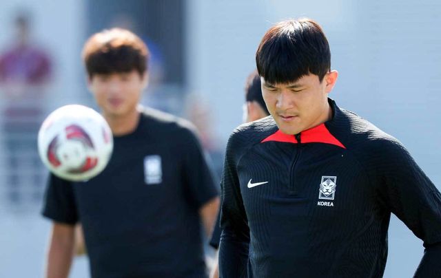 2023 아시아축구연맹(AFC) 카타르 아시안컵에 출전 중인 대한민국 축구대표팀 김민재가 23일(현지시간) 카타르 도하 알 에글라 트레이닝 센터에서 훈련을 하고 있다. 2024.1.23 / 뉴스1
