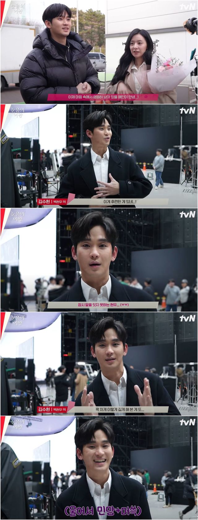 배우 김수현이 '눈물의 여왕' 마지막 촬영 현장에서 눈물을 보였다.