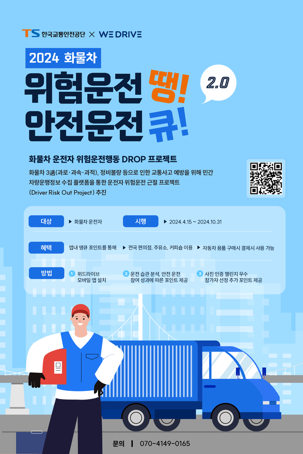 [내외일보] 한국교통안전공단(이사장 권용복, 이하 TS)은 안전한 운전문화 확산을 위한 운전자 위험행동 근절 프로젝트(Driver Risk Out Project, 이하 DROP 프로젝트)의 일환으로 올해 ‘화물차 위험운전 땡! 안전운전 큐! 2.0(이하 땡큐 프로젝트)’을 추진한다고 밝혔다.