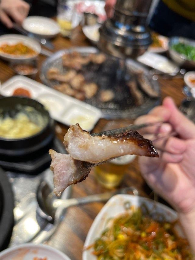A씨 일행은 흑돼지 오겹살과 생갈비를 합해 총 1100g의 고기를 100g당 1만1000원의 값을 치르고 먹었다. / 보배드림