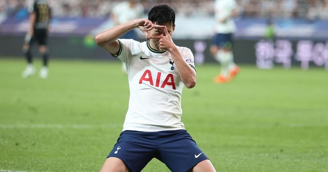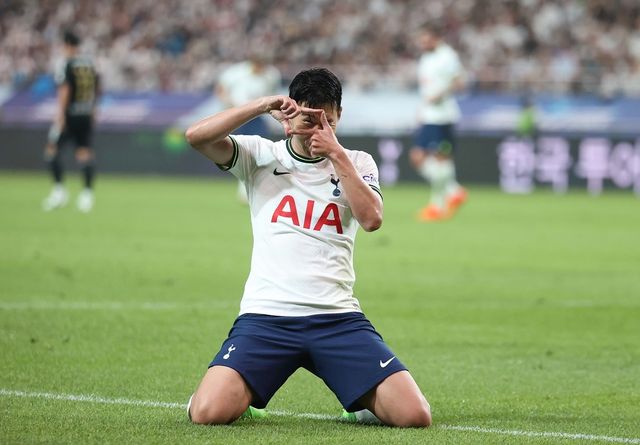 2022년 7월 13일 서울월드컵경기장에서 열린 팀 K리그와 잉글랜드 프로축구 프리미어리그 토트넘 홋스퍼의 친선경기에서 손흥민이 득점 후 세리머니를 하고 있다. / 연합뉴스